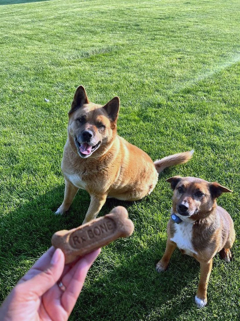 Our love for Louie (and his pals Oscar and Leo) was the seed that began our journey to create the best nutritious dog bone treat possible. It took a while, but we finally perfected a batch of bacon Rx Bones—with a great mix of nutritious ingredients, cooked to the perfect crunch. I put them in a Ziploc bag on the kitchen table and went to get my coat to head out with my trial samples. Just a few minutes later, I returned to an unbelievable scene: Louie finishing off the first batch of Rx Bones! He had not only been enticed by the bones’ aroma, but also willed himself to jump onto the table and chew them out of the bag. Our first customer was absolutely crazy for Rx Bones.